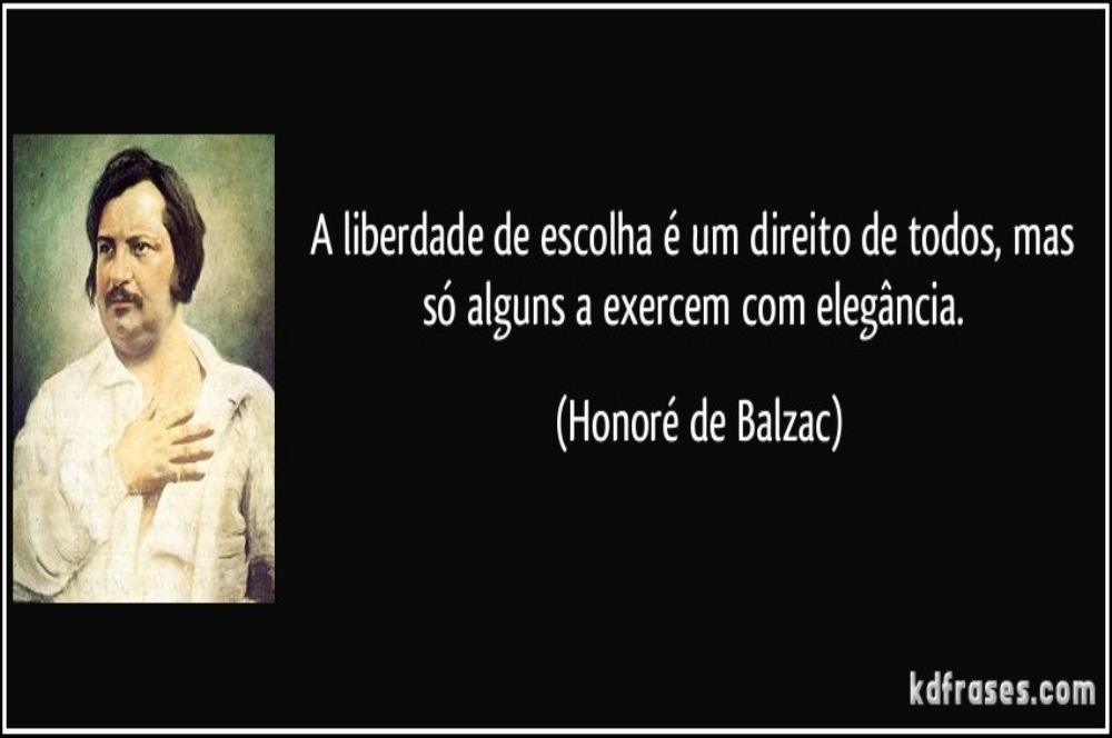 “A liberdade de escolha é um direito de todos, mas só alguns a exercem com elegância.” Honoré de Balzac, escritor francês, morreu em 18 de Agosto de 1850 (n. 1799).