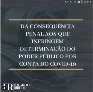 Estado visando garantir o distanciamento social da população sergipana no momento em que enfrentamos o COVID-19. Calçadões, shoppings, parques públicos e praias estão fechados neste momento. Reuniões, festas, cultos e missas presenciais estão proibidos. Muitos não sabem que ao infringirem tais decretos podem estar cometendo um crime previsto no artigo 268 do Código Penal Brasileiro. Já há decisão do Poder Judiciário do Estado de Sergipe, no sentido de identificar e processar criminalmente aqueles que cometem tal delito.Sua pena é de detenção, de um mês a um ano e multa. Então, neste momento é necessário cumprir as determinações do Poder Público para resguardar sua saúde, bem como, não correr o risco de ser processado criminalmente. Texto: Gustavo Costa – Advogado ER: https://www.instagram.com/eduardoribeiroadvocacia/