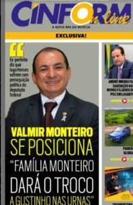 Família Monteiro dará o troco nas urnas e na hora certa Na entrevista, Valmir fala em demissões e ameaças constantes. “Família Monteiro dará o troco a Gustinho nas urnas”, avisa afirmando que todos em Sergipe conhecem a índole de Gustinho Ribeiro. “Só vota em Gustinho quem tem algum benefício com ele ou quem não o conhece. Se já cometi erros na política, um deles foi me aliar a este rapaz…”