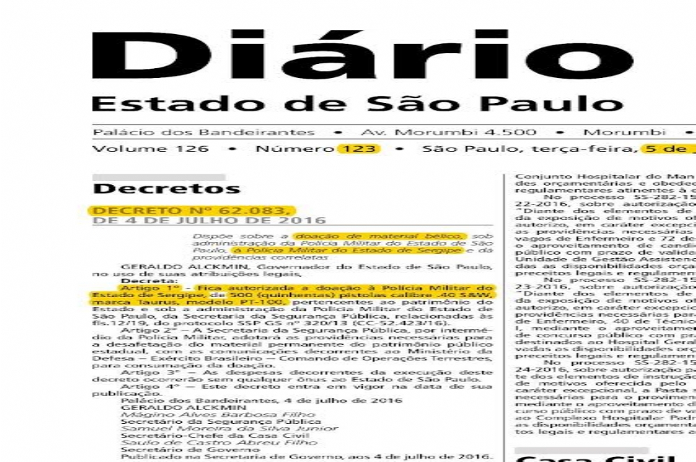 A foto ao lado é do Diário Oficial do Estado de São Paulo onde o governo repassa através de doação a Polícia Militar de Sergipe 500