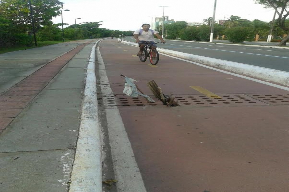 A foto ao lado foi enviada por um leitor. É da ciclovia em frente ao Parque da Sementeira. Um grande risco para os ciclistas. A