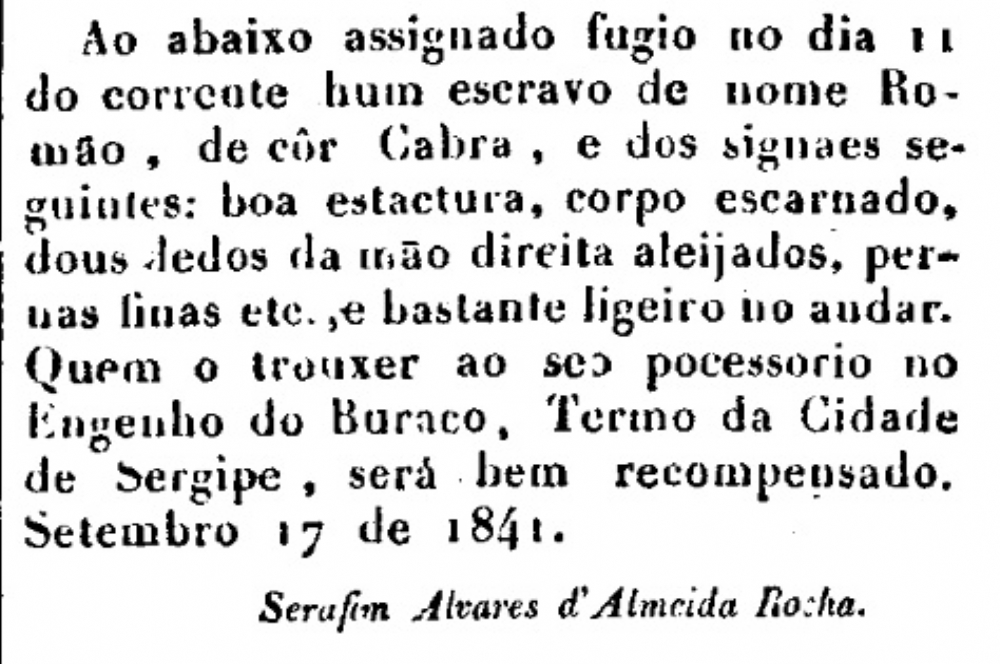 | Publicado no jornal aracajuano Correio Sergipense, em 18 de setembro de 1841. |