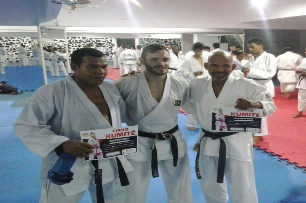 E os professores karatecas Yoacan Jócelis e Edson, ao lado do atleta Alex, participaram no último fim de semana de um curso de