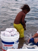 têm a tradição de “bater a roupa” na pedra e deixá-la para quarar. O colorido das roupas na pedra quarando ao sol quente é um cenário de encher os olhos a beira das águas esverdeadas do Velho Chico. A paisagem é emoldurada por crianças que brincam na água e embarcações centenárias.