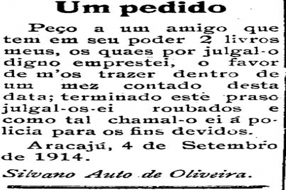 | Publicado no jornal Correio de Aracaju, em 12 de setembro de 1914 |