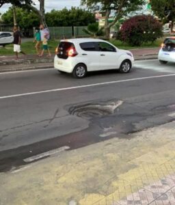 Buraco na Avenida Coelho e Campos próximo ao Incra. “A Deso só vai tapar quando acontecer um acidente com morte. E quando chove é pior, porque a água esconde o buraco.” Enviado por motoristas que passam diariamente pelo local.