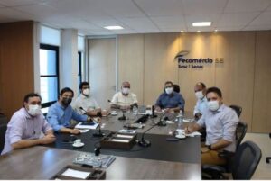 Demandas e parcerias Os responsáveis pela empresa de navegação e estaleiro H. Dantas, Luiz Felipe e Rafhael Laguna, visitaram a Fecomércio ontem, 17, quando se reuniram com o superintendente do Sistema Fecomércio/Sesc/Senac, Maurício Gonçalves e o diretor técnico do Sebrae, Brenno Barreto. Na oportunidade, discutiram a atuação da empresa no processo de comércio exterior, com o gestor Lucas Lima, além de tratar sobre demandas dos produtos de pesca e aquicultura no estado, com os representantes da Câmara Empresarial de Pesca da Fecomércio, Lee Fei e Humberto Eng. Também foram tratadas parcerias entre a empresa náutica com a Câmara de Pesca e as potencialidades de trabalhar com o processo de transporte de mercadorias através dos barcos da H. Dantas, que desenvolve atividade de navegação mercante.