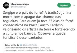 www.twitter.com/CFcomunicologo Sergipe é o país do forró? A tradição junina morre com o apagar das chamas das fogueiras. Para quem já teve 35 dias de forró consecutivos na Praça Fausto Cardoso, valorizando os artistas da terra e fortalecendo a cultura nos bairros. Observar a queda turística é desencantador.