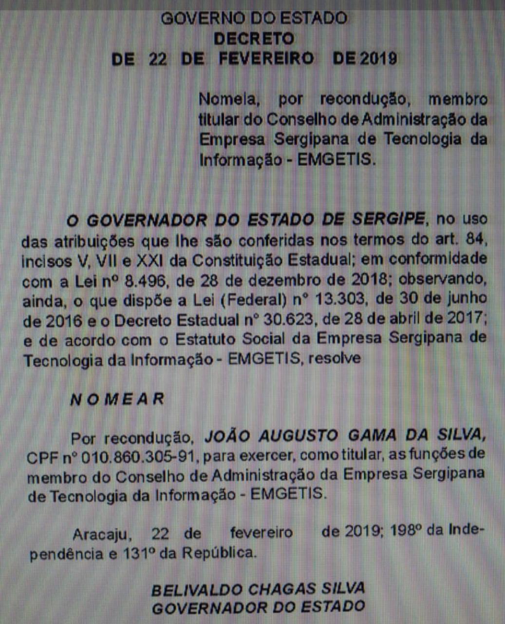 Sergipe melhor será quando as finanças estiveram sanadas, sem privilégios aos “aspones,” às “figurinhas carimbadas” do poder em Sergipe e os servidores estiverem recebendo dentro do mês um salário justo. Fora disto é proselitismo e jogo de interesses. Todos os dias as nomeações do Diário Oficial desmentem o governador. Ontem, 25, até João Gama, ex-secretário e empresário de sucesso foi renomeado conselheiro da Emgetis.