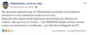 Operação Juízo Final em Ribeirópolis Pelo zap: “Policiais supostamente teriam entrado em domicílio errado em Ribeirópolis. Veja o que postou num perfil “Ribeirópolis como eu vejo” acerca da operação Juízo Final naquele município.” No print ao lado.