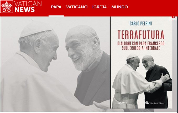 TerraFutura: diálogo do Papa sobre ecologia integral com o fundador do “Slow Food” Foram três encontros. Francisco conta ao gastrônomo-escritor Carlo Petrini a sua “conversão ecológica”: do ‘cansaço’ como cardeal em Aparecida em 2007 pela insistência dos bispos brasileiros em defesa da Amazônia até a preparação da encíclica Laudato si’. E explica: “É preciso mudar rapidamente nossos paradigmas se quisermos ter um futuro” Toda matéria aqui: https://www.vaticannews.va/pt/papa/news/2020-09/laudato-si-terra-futura-papa-francisco-carlo-petrini.html