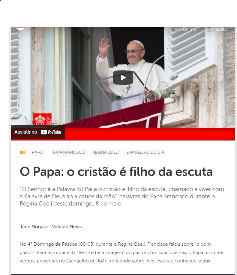 Ouça e compartilhe: https://www.vaticannews.va/pt/papa/news/2022-05/papa-francisco-regina-caeli-8-de-maio.html
