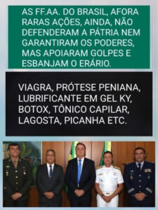 Agora, ele já prepara a narrativa de que as eleições deste ano sem o voto impresso não são confiáveis. Coloca as forças armadas (que gostam de mordomias, iguarias de luxo e viagras) para serem fiadoras do processo eleitoral, numa espécie de quarto poder, guarda pretoriana ou poder moderador (algo só visto no império, até nisso o bolsonarismo nos regride). Com efeito, o Bolsonarismo é capaz de apresentar teorias da conspiração a cada esquina. Tudo serve ao propósito de desviar o foco de problemas econômicos e sociais urgentes do Brasil e preparar a escalada do golpe.