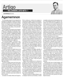 www.twitter.com/JoseRollemberg Bom dia. No Correio de Sergipe de hoje, 30.03.2022, a peça Agamemnon, de Ésquilo, a etapa inicial da Oresteia, narrativa mítica do nascimento do primeiro tribunal e dos problemas de fazer justiça com as próprias mãos. Link para a versão web: https://ajn1.com.br/type_blogs/agamemnon/