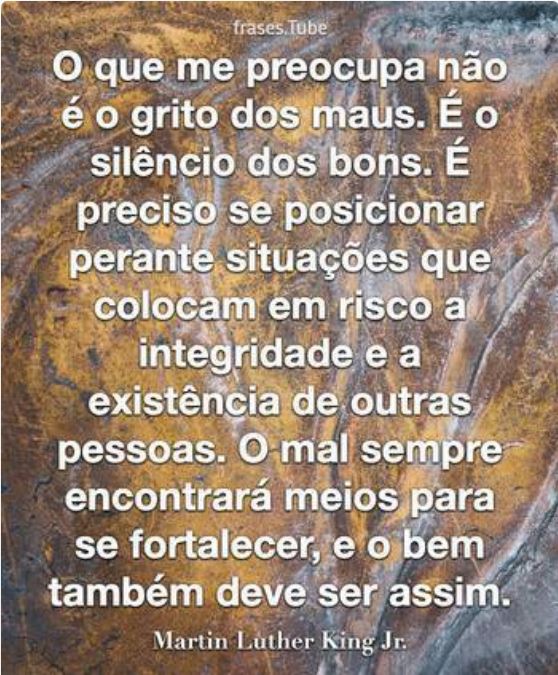 Conhecer a história ajuda a evitar erros. Martin Luther King já alertava, “o que preocupa não é o grito dos maus, mas o silêncio dos bons”. Apesar das ameaças e ofensas que sofrem hoje os que se levantam pela verdade, não é hora de calar. É hora de defender a vida e a democracia.”