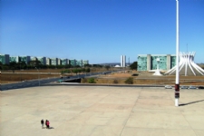 s obras ganham mais vida com o traçado das duas grandes vias, o Eixo Monumental (Leste e Oeste) e o Eixo Rodoviário (Norte e Sul), que se cruzam. No Monumental Leste estão os prédios-símbolos da cidade e são eles onde a sinuosidade de Niemayer está mais a vista: a catedral, a Esplanada dos Ministérios, o Palácio do Itamaraty e o Ministério da Justiça. Separando-os, fica o Congresso Nacional. Atrás dele, a Praça dos Três Poderes, com o Palácio do Planalto e o Supremo Tribunal Federal.