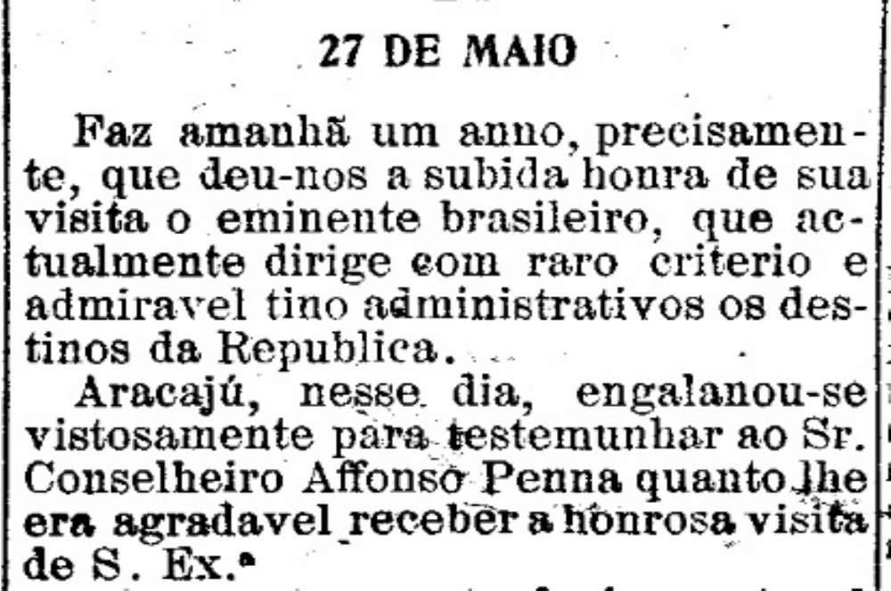 | Publicado na Folha de Sergipe, em 26 de maio de 1907 |