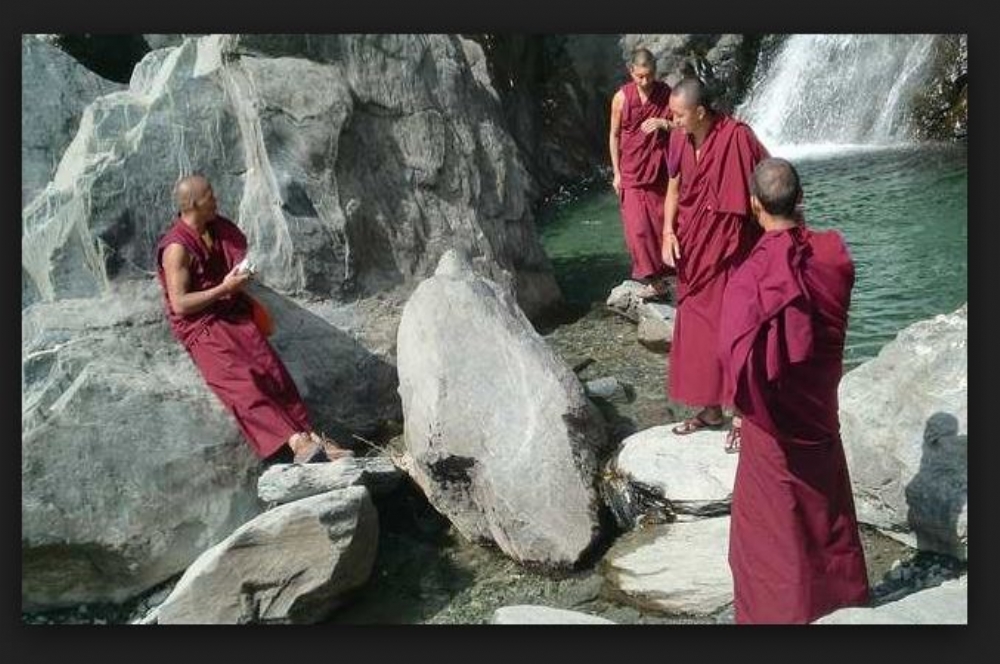 Monge e discípulos iam por uma estrada e, quando passavam por uma ponte, viram um escorpião sendo arrastado pelas águas. O monge correu