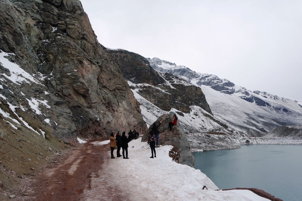Perto de Los Chacaynes fica segunda parada para verificar um grande penhasco com uma série de picos e serras que valem um clique. O guia mostra algumas geleiras e glaciares nos picos da Cordilheira e ao longo do caminho outros pontos interessantes merecem outros cliques, até chegar barreira de represamento do reservatório Embalse el Yeso, inaugurado em 1967 e conhecido por ser o principal responsável de abastecimento de água potável da cidade de Santiago e construído estrategicamente para represar parte das aguas das geleiras.