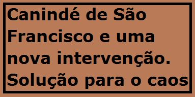 A única saída para Canindé será uma nova intervenção. A terceira em sua história. Somente um interventor, técnico, sem compromissos políticos, poderá dar início aos ajustes duros, mas necessários que o município precisa. Dar um choque de gestão com medidas que façam os serviços públicos funcionarem, sem ceder aos favores e pressões políticas. Uma intervenção que siga até final de 2020 e que faça a transição para o novo prefeito a ser eleito em outubro do ano que vem.