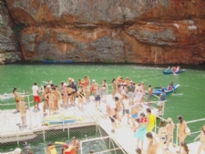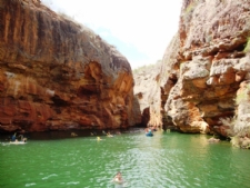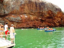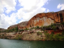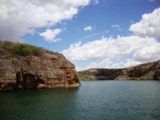 ados com o primeiro contato com paredões margeando as águas ora azuladas, ora esverdeadas e, tão logo passam os primeiros momentos, tem-se a visão do Lago do Justino, uma imensa represa entre paredões com profundidade de mais de 150m. Avistam-se pedras esculpidas pelo tempo e logo-logo são nomeadas pelo condutor, ganhando forma na mente dos visitantes: Pedra do Gavião, Pedra do Japonês, até mesmo Morro dos Macacos.
