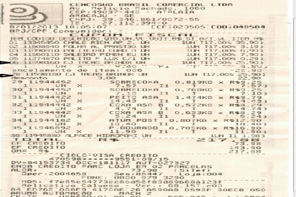 Cupom fiscal com o preço errado que foi estornado depois da queixa do consumidor…