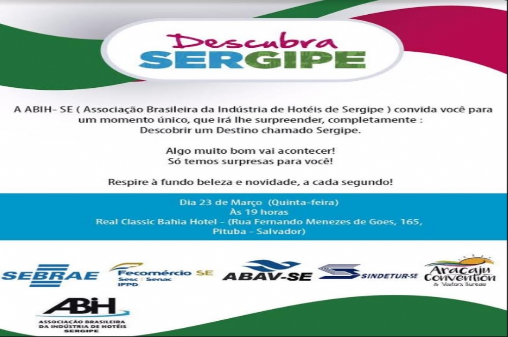 A Bahia foi escolhida por ser o maior emissor de turistas para Sergipe e dentro desta logística, a ABIH/SE desenvolverá Blitz nas cidades de Alagoinhas, Feira de Santana e Salvador onde o encerramento conta com a capacitação de 200 agentes de viagens que terão a oportunidade de conhecer melhor as potencialidades turísticas do destino Sergipe, transformando-se em agentes multiplicadores na captação de turistas.
