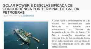 parceira da Ebrasil, na Celse ( Centrais Elétricas de Sergipe S.A.)uma joint venture responsável pelo projeto de geração de energia UTE Porto Sergipe I e na construção da maior termoelétrica a gás da América Latina, foi desclassificada da disputa pelo terminal de gás natural liquefeito (GNL) na Bahia pela Petrobras. A Golar Power foi a única empresa a apresentar uma proposta comercial.