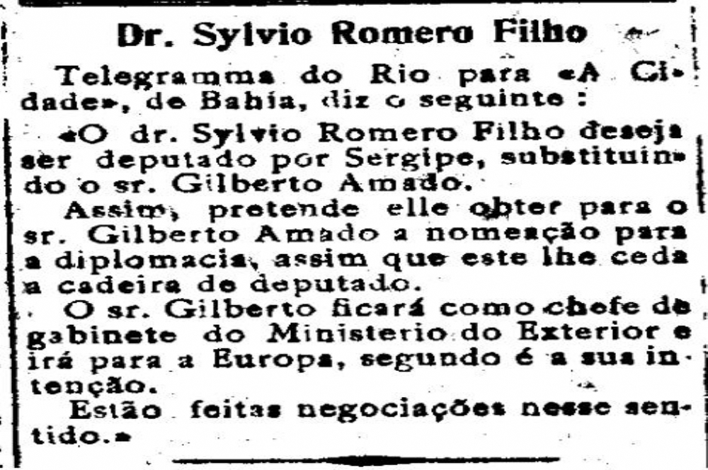 | Publicado no jornal aracajuano Diário da Manhã, em 13 de janeiro de 1917. |
