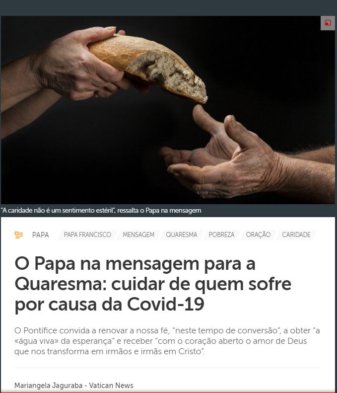 www.twitter.com/SenadorRogerio Perfeitas palavras santo Papa Francisco, o que esperar de um país que deixa seu povo sem saúde, sem vacinas, sem comida, passando fome, frio e sem educação e prioriza a indústria da arma, das milícias, do crime organizado, da morte? #MaisVacinas #MenosArmas
