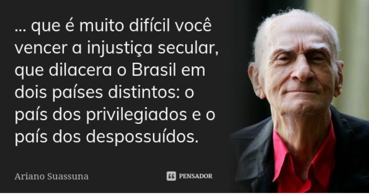 “Que é muito difícil você vencer a injustiça secular, que dilacera o Brasil em dois países distintos: o país dos privilegiados e o país dos despossuídos.” Ariano Suassuna, se vivo completaria 94 anos hoje, 16 de Junho.
