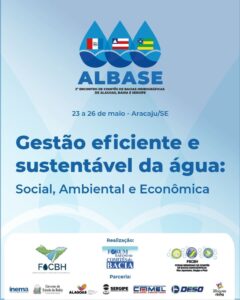 Segundo Encontro dos Comitês de Bacia Hidrográfica de Alagoas, Bahia e Sergipe – ALBASE De 23 a 26 de maio de 2023, será realizado o Segundo Encontro dos Comitês de Bacia Hidrográfica de Alagoas, Bahia e Sergipe – II ALBASE, na cidade de Aracaju, Sergipe, no Hotel Sesc Atalaia. O evento tem como objetivo promover a integração e troca de experiências entre os comitês de bacias