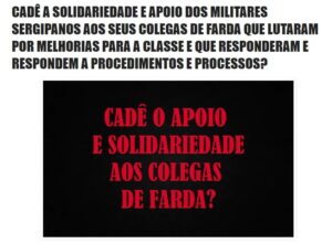 Cadê a solidariedade e apoio dos militares sergipanos aos seus colegas de farda que lutaram por melhorias para a classe e que responderam e respondem a procedimentos e processos?
