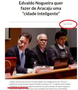 Nos dois mandatos, Edvaldo participou de muitos “congressos” sobre cidade inteligente, mas Aracaju não saiu da mesmice. Basta uma pesquisa rápida no google para descobrir que o prefeito Edvaldo Nogueira, nos últimos sete anos (7 não é conta do mentiroso?), todos os anos viajou para congressos no exterior onde o tema “Cidade Inteligente” estava na pauta. E a atual viagem a China é apenas mais uma de muitas que já ocorreram por todo o mundo.