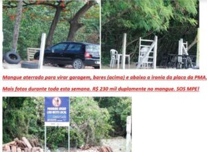 Naquele momento, o blog pensou que com a cerca e a fiscalização da área do meio ambiente, ou seja, a Sema, acabariam os aterros da margem do mangue que estavam virando garagens, como também os “puxadinhos”, inclusive para bares, baias de cavalos e outros. E ainda tem placas da Prefeitura informando que é proibido jogar lixo neste local. É, lixo não, mas aterrar várias partes pode.