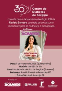 Informação que cuida; medicina que avança No editorial, o presidente da Somese, o experiente e destacado médico Raimundo Sotero, destaca a importância e o compromisso da entidade com a formação de qualidade, a valorização da classe médica e o debate responsável sobre temas essenciais a saúde. Ele cita a matéria de capa sobre a menopausa, que é um assunto ainda cercado por dúvidas, receios e desinformação. “O conteúdo desfaz mitos relacionados à reposição hormonal, esclarece riscos e benefícios com base em evidências científicas e reforça a importância de buscar orientação com especialistas qualificados”, reforçou Sotero.