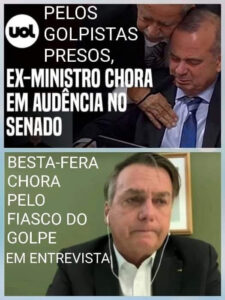 DEVERAS, SEM EXAGERO DE LINGUAGEM, SERIA IMPRESCINDÍVEL UMA BATELADA DE PENICOS, PARA ACUMULAR O DILÚVIO DE LÁGRIMAS DESSES DOIS DESBUNDANTES E ABALADIÇOS CANASTRÕES EM DUAS MAMBEMBES COMÉDIAS-BUFA DE “CRATOCHANCHADA” DA POLITICALHA DESTE “PATROPI!, OS QUAIS CONSPIRARAM PARA O MALFADADO E TRUCULENTO GOLPE E, AGORA, TENTAM EMPLACAR A RIDÍCULA, INÓCUA E CONTRAPRODUCENTE TESE VITIMATÓRIA CONTRA ATOS PRÓPRIOS E DE TERCEIROS, COAUTORES E PARTÍCIPES, PARA INOCENTAR OS VERDADEIROS RESPONSÁVEIS, AO TRANSFORMAREM-NOS DE AGENTES ATIVOS EM AGENTES PASSIVOS DE CONDUTAS DELITIVAS, SOBEJAMENTE NOTÓRIAS E OBJETIVAMENTE PROVADAS.