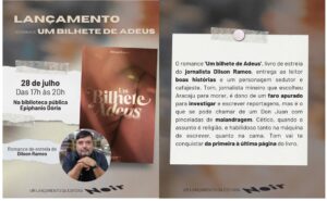 “Um bilhete de adeus”, romance do jornalista Dilson Ramos será lançado segunda-feira, 28 Histórias repletas de erotismo e uma Aracaju estacionada nos anos 80 e 90. Assim é “Um bilhete de adeus”, romance do jornalista Dilson Ramos, que será lançado na próxima segunda-feira, 28, na Biblioteca Pública Epiphanio Dória, em Aracaju. A obra, primeiro livro do autor, apresenta o jornalista Tom, personagem que transita entre o faro apurado para correr atrás de furos jornalísticos e um charme irresistível que o leva a se envolver com suas fontes.