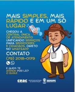 A Secretaria de Estado da Administração avança na modernização dos serviços ofertados pela SEAD e CEACS, ampliando o acesso e a qualidade do atendimento. Agora, cidadãos e servidores contam com o atendente virtual “GUGU”. A Central Multicanal de Atendimento, por meio do número 2018-0179, disponível para contato via ligação telefônica ou WhatsApp. Em um único canal, é possível solicitar serviços e obter informações de forma rápida, prática e eficiente, facilitando ainda mais o acesso e promovendo uma experiência mais ágil e integrada para todos, com os serviços SEAD e CEACS.