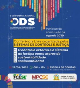MPC, TCE e TJSE abrem inscrição para Conferência Livre sobre ODS em Sergipe O Ministério Público de Contas (MPC-SE), o Tribunal de Contas do Estado (TCE) e o Tribunal de Justiça de Sergipe (TJSE) abrem inscrição para “Conferência Livre ODS – O controle externo e o sistema de justiça como atores da sustentabilidade socioambiental”, etapa preparatória para a 1ª Conferência Nacional dos Objetivos de Desenvolvimento Sustentável (ODS).