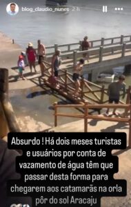 Descaso Iguá há mais de dois meses. O blog já postou por duas vezes no Instagram e nada. Na passarela da Orla Pôr do Sol, no Mosqueiro (AJU) onde os turistas e usuários do passeio através dos catamarãs passam há vários meses tem um vazamento de água prejudicando a passagem conforme o vídeo aqui:0046da39-48e3-4ae7-aa2e-8ec4a588ff89 Foram várias solicitações a Iguá e nada. Estão esperando alguém se acidentar…