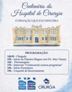 Hospital de Cirurgia realiza formatura especial de residentes em celebração aos 100 anos nesta sexta, 27 O Hospital de Cirurgia (HC), primeiro hospital-escola de Sergipe e responsável pela implantação da primeira Residência Médica do estado, realiza nesta sexta-feira, 27, o evento “Centenário do Hospital de Cirurgia – Formação que faz história”, a partir das 15h, no Auditório Padre Melo, no Campus Farolândia da Universidade Tiradentes (Unit). A solenidade integra as comemorações dos 100 anos da instituição hospitalar, celebrado em 2 de maio de 2026, e terá como ponto alto a formatura dos residentes médicos e multiprofissionais da turma 2026. O evento reunirá ex-residentes, residentes, preceptores, supervisores, estudantes, diretoria e convidados, com uma programação que inclui palestra magna sobre a trajetória da residência no hospital, homenagens a profissionais e residentes que marcaram época, exposição dos programas de Residência Médica e Multiprofissional do hospital e, como momento central da solenidade, a formatura dos novos especialistas.