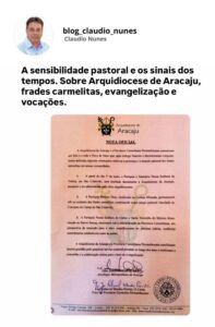 Porém, retornando ao assunto da evangelização – tirando a celeuma dos bastidores do convento histórico de São Cristóvão, doado aos Carmelitas por Dom Lessa – o blog acredita que não é apenas disputa por espaços. Pelo contrário, são sinais dos tempos.