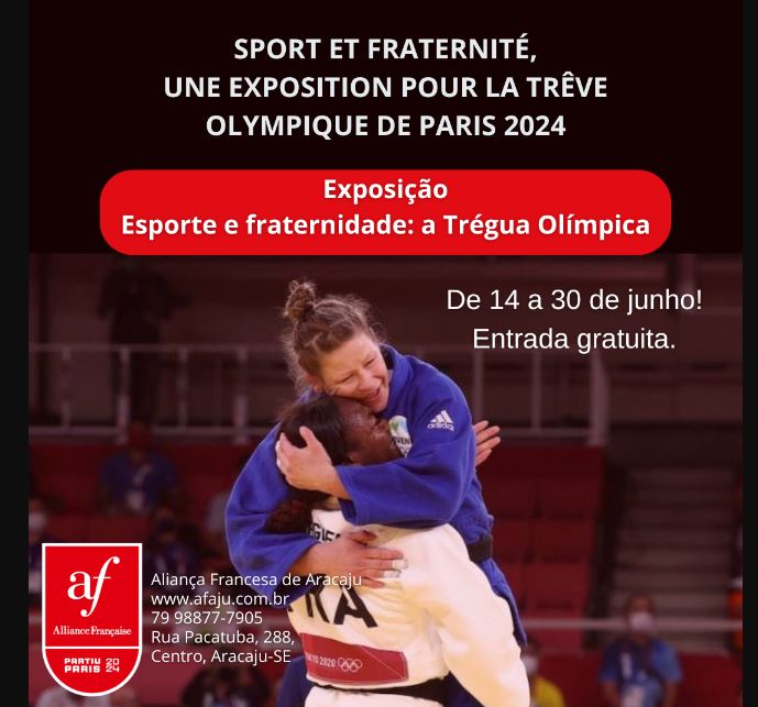 A Aliança Francesa de Aracaju, com o apoio do Consulado Geral da França de Recife, promove na sua sede, situada na Rua Pacatuba 288A, a exposição itinerante “Sport et Fraternité”, “Esporte e Fraternidade”, com entrada franca ao público até o dia 30 de junho.