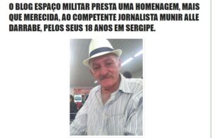 Ao ter completado 18 anos em Sergipe nesta terça-feira, dia 03 de setembro de 2023, o blog Espaço Militar faz questão de homenagear o competente jornalista Munir Alle Darrage, que apesar de ser sul-mato-grossense de nascimento, adotou Aracaju e o Estado de Sergipe, como sua nova terra, sendo reconhecido e respeitado pelo seu trabalho profissional e admirado pelos sergipanos.