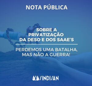 Perdemos uma batalha, mas não a guerra. Seguiremos firmes na luta em defesa dos empregos dos trabalhadores e trabalhadoras da DESO e dos SAAEs, bem como da soberania do povo sergipano sobre o seu bem maior, que é a água, assegurando o direito de acesso igualitário, universal e com tarifa justa, algo que não se efetivará sob a égide do capital privado, que só visa lucro, acima dos interesses coletivos.