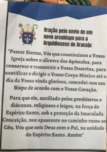 No último fim de semana, em algumas missas, como na realizada na Igreja Bom Jesus dos Navegantes, foi entregue uma oração aos fiéis (ver print ao lado), para que seja concedido a arquidiocese um bispo de acordo com o “Vosso Coração”. Ou seja, de acordo com o que prega Jesus Cristo.