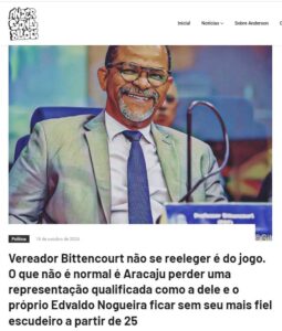 Assim, em última análise, a não reeleição de Bittencourt, pelas qualidades aqui já citadas, é uma derrota para Aracaju e também pra Edvaldo! Afinal, quem mais do que o vereador defendeu e defende o legado ‘edvaldista’ em Aracaju? E lógico que isso consome créditos eleitorais e que isso ‘queima’ pontes que, numa última instância, dificulta uma eleição, por óbvio.