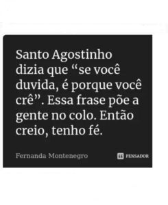 “Santo Agostinho dizia que “se você duvida, é porque você crê”. Essa frase põe a gente no colo. Então creio, tenho fé.” Fernanda Montenegro.
