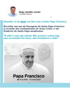 Recordar um ano da Passagem do Santo Papa Francisco é recordar dos ensinamentos de Jesus Cristo. E um lembrete do Santo Papa atualíssimo: